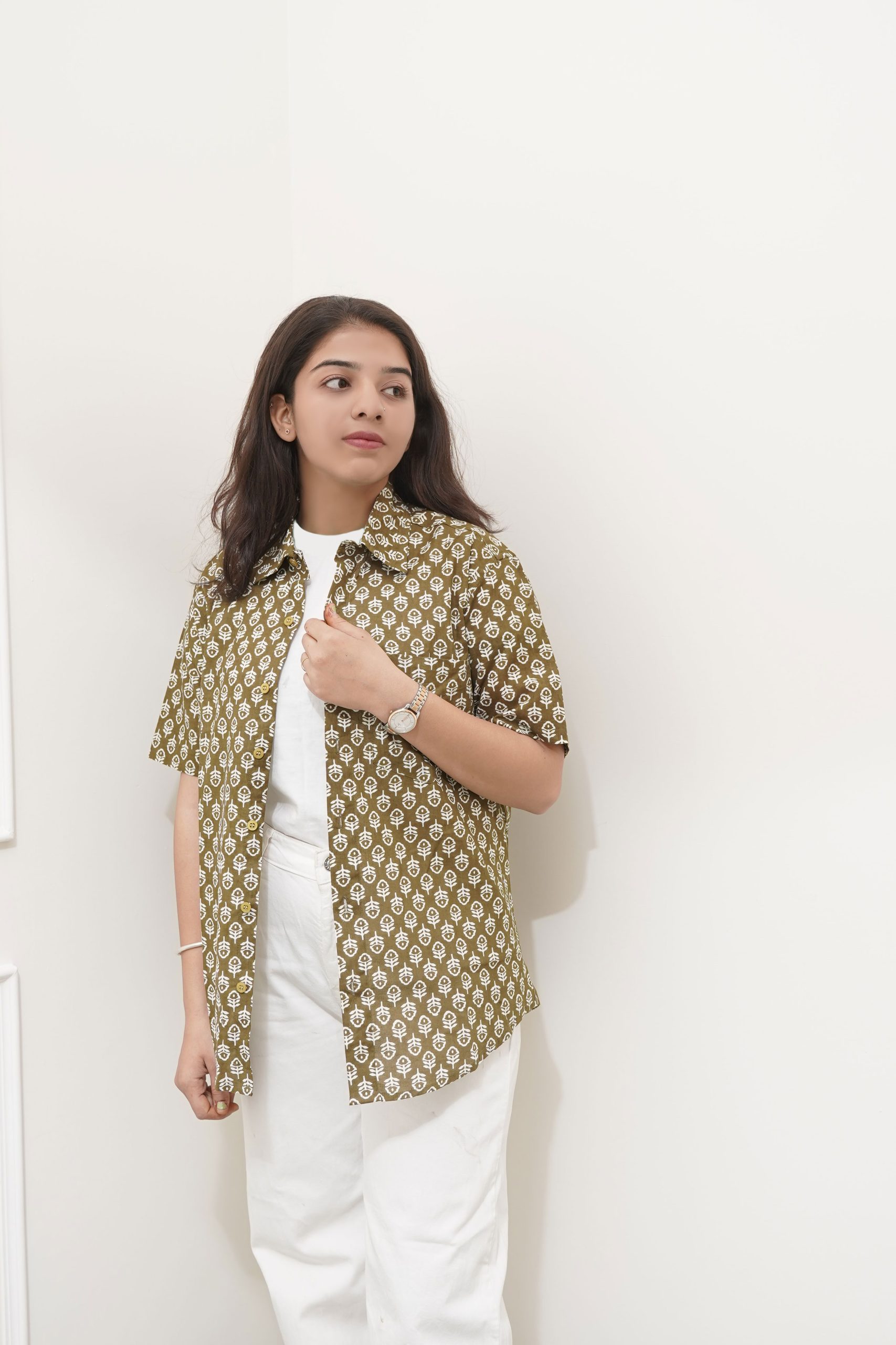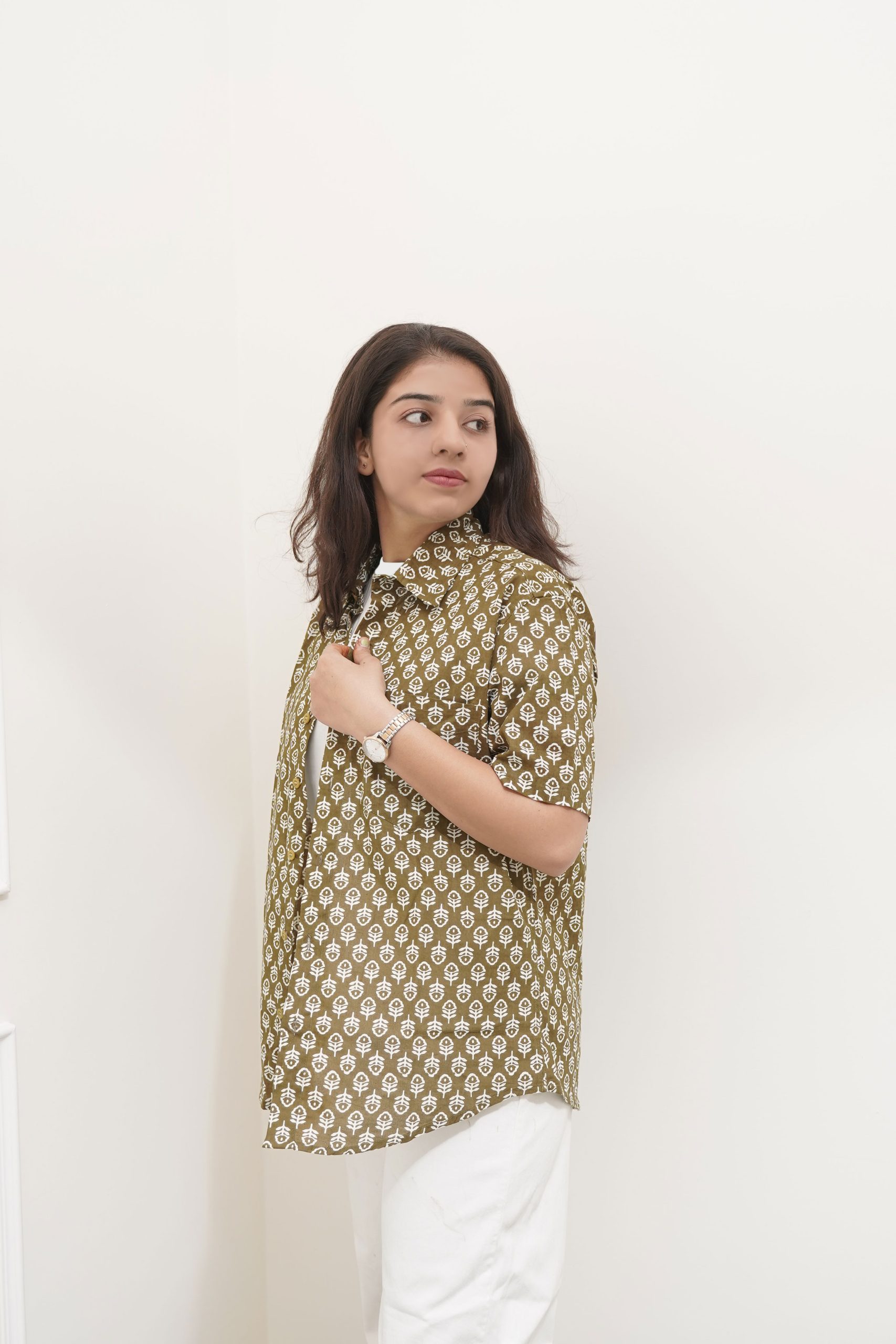 Sanganeri Green printed shirt